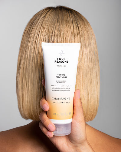 Toning treatment deposits warm blonde tone in colored blonde hair.